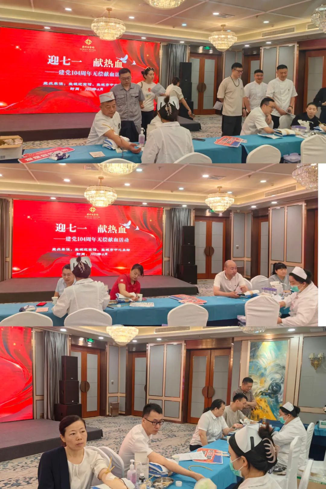 在七一建党节来临之际,为弘扬奉献精神,展现国企担当,盐城迎宾馆积极组织开展了“迎七一,献热血”活动 ,用实际行动向党的生日献礼。