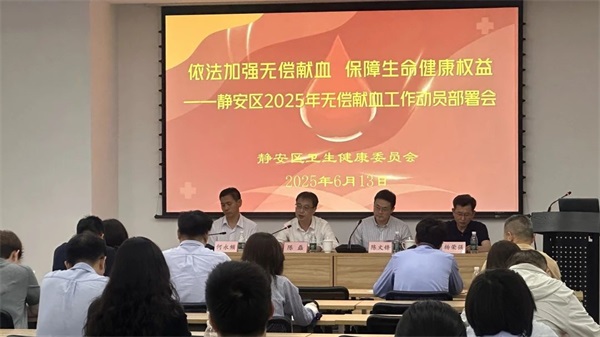 6 月 13 日,静安区 2025 年无偿献血工作动员部署会召开。会议由区卫健委副主任陈文锋主持,区卫健委主任陈磊、健促中心主任何永频、副主任杨荣强与辖区企事业单位代表齐聚一堂,共商无偿献血事业发展。会议系统总结了近三年工作成果,并通过欧莱雅中国、第十人民医院、彭浦新村街道等单位的经验分享,明确了 “多方协作、精准动员” 的工作方向。