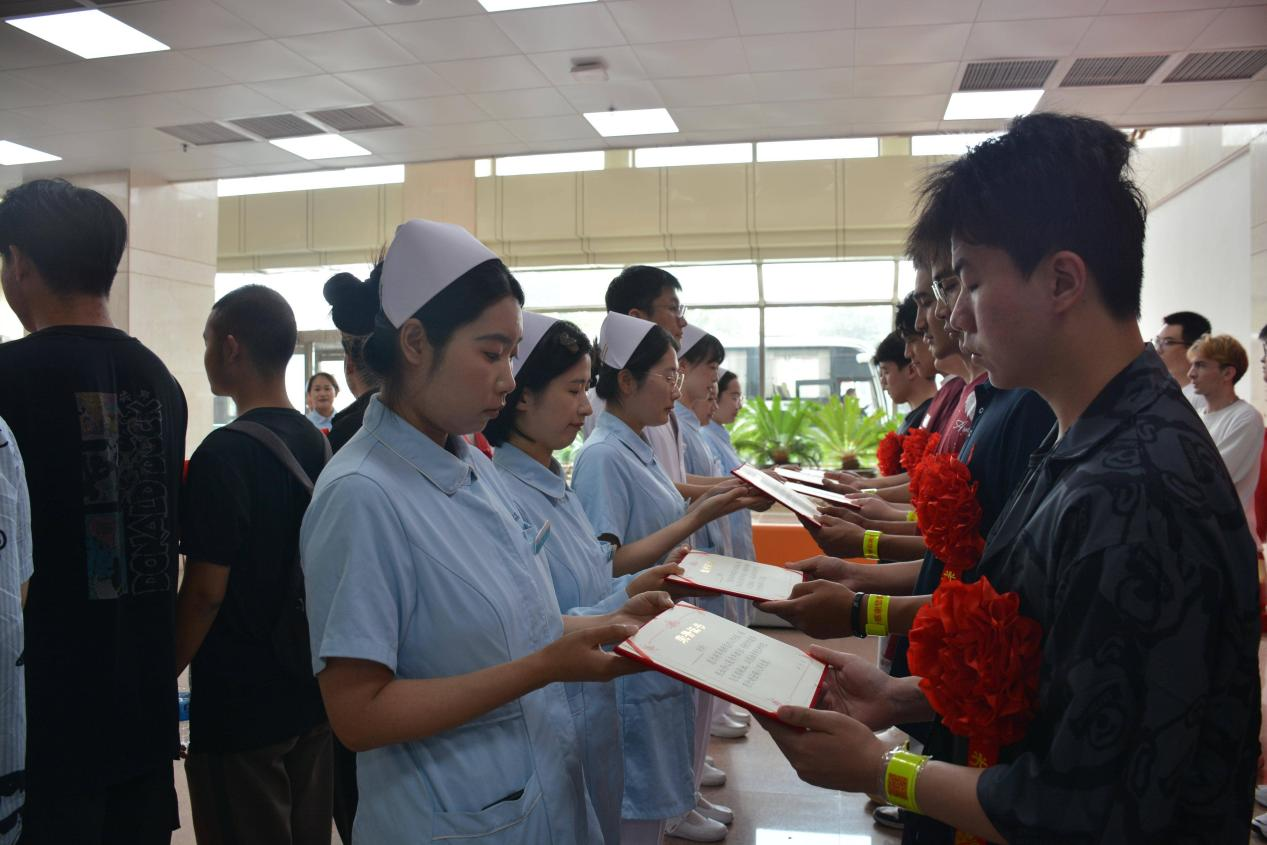6月28日,天津现代职业技术学院组织30余名参军报名青年、献血志愿者走进天津市血液中心,以无偿献血的实际行动传递爱心。学生部刘杨带队组织献血,并踊跃加入到无偿献血队伍当中。活动现场,市血液中心医护人员为参与活动的应征报名青年颁发献血荣誉证书,对他们志愿献身国防并积极参与公益献血的善举给予高度赞誉,被天津现代职业技术学院教师率先垂范的精神深深打动。随后,志愿者有序完成健康征询、血液初筛等前期准备工作,在采血区依次挽袖献血,鲜红的血液顺着软管流入储血袋,承载着青春的温度与善意。 本次参与献血的青年为2025年秋季征兵体检合格的同学。作为“准军人”,当看到学院组织无偿献血通知后,纷纷踊跃报名,他们以“热血”践行双重使命——既是保家卫国的预备力量,也是服务社会的爱心先锋。这些带着青春温度的血液将用于临床救治,为需要帮助的患者送去希望。此次活动是天津现代职业技术学院“国防教育与社会实践融合”的一次实践探索,通过公益行动引导应征青年将爱国情怀转化为服务社会的具体行动,进一步厚植责任意识与奉献精神。青年们用热血书写担当,以实际行动践行“精益求精”校训精神,诠释“强国有我”坚定信念。