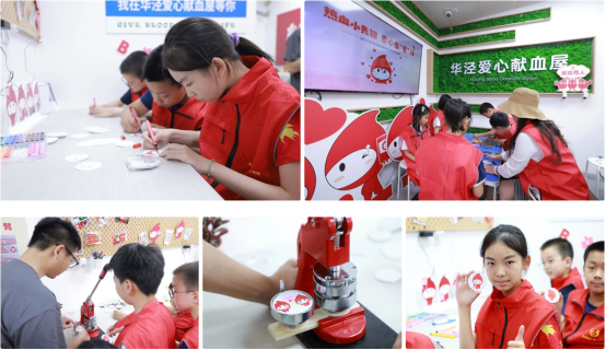 小手牵爱,守护希望。随后这些小志愿者们充分发挥想象力,用五彩画笔在印有血宝的徽章上绘制自己喜欢的颜色。一枚枚饱含童真的徽章很快诞生,承载着他们对公益事业的美好祝愿。下午孩子们走上街头,将亲手绘制的徽章赠予来往的爱心人士,用稚嫩却坚定的声音介绍无偿献血知识和意义,并热情邀请大家一同参与献血。