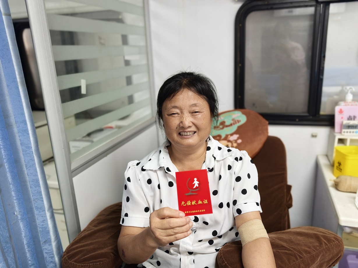 7月12日清晨,鲁厚兰顶着酷暑早早来到和县献血屋,面对高温天气的考验,鲁厚兰没有丝毫退缩。尽管汗水浸湿了衣衫,但她的眼神中始终闪烁着坚定的光芒。当被问及为何如此执着于献血时,鲁厚兰朴素的话语中透露出无尽的深情:“只要身体条件允许,我就会一直献下去。因为我知道,我的血液可能就能挽救一个生命,这是我作为社会一员应尽的责任。"在献血过程中,鲁厚兰始终保持着平和的心态和乐观的笑容,本次成功献血400毫升。