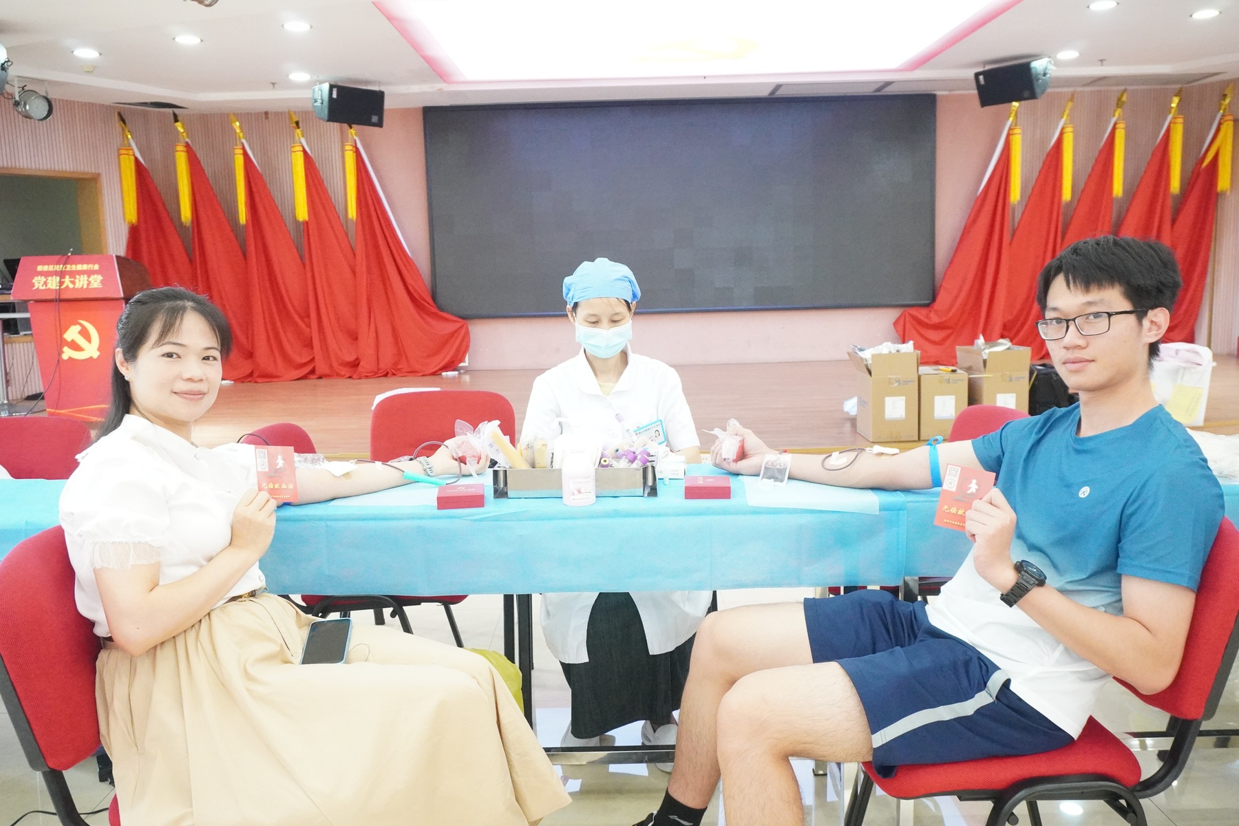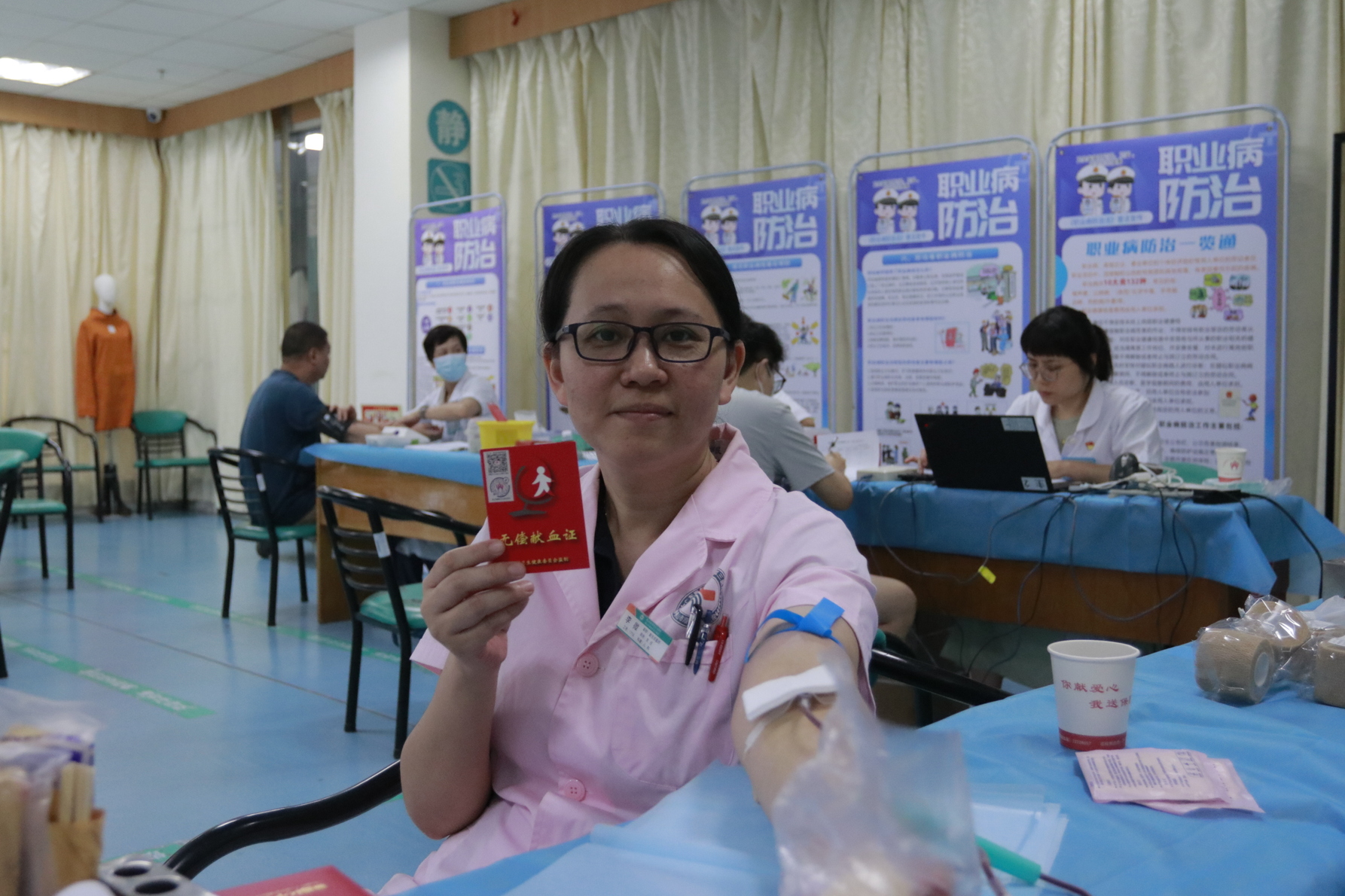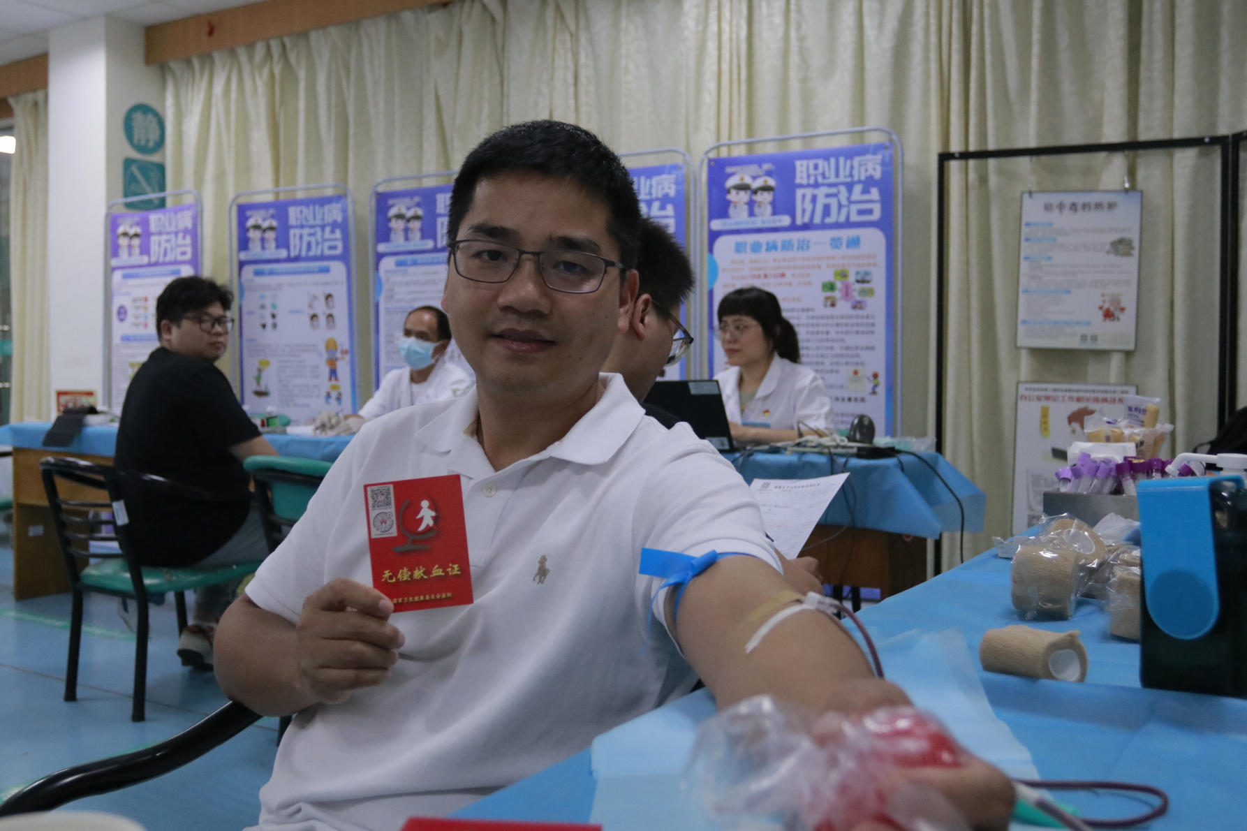 活动现场,在顺德区中心血站工作人员的专业引导和细致服务下,献血的医务人员严格遵守献血流程,有序进行信息登记、健康征询、体格检查和血液初筛等流程。