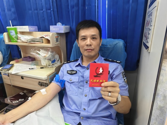 民警胡文俊自2010年就开始参加献血,目前已累计献血8次。他说:“我们捐献的每袋血都可能挽救一个家庭,这份坚持值得。”