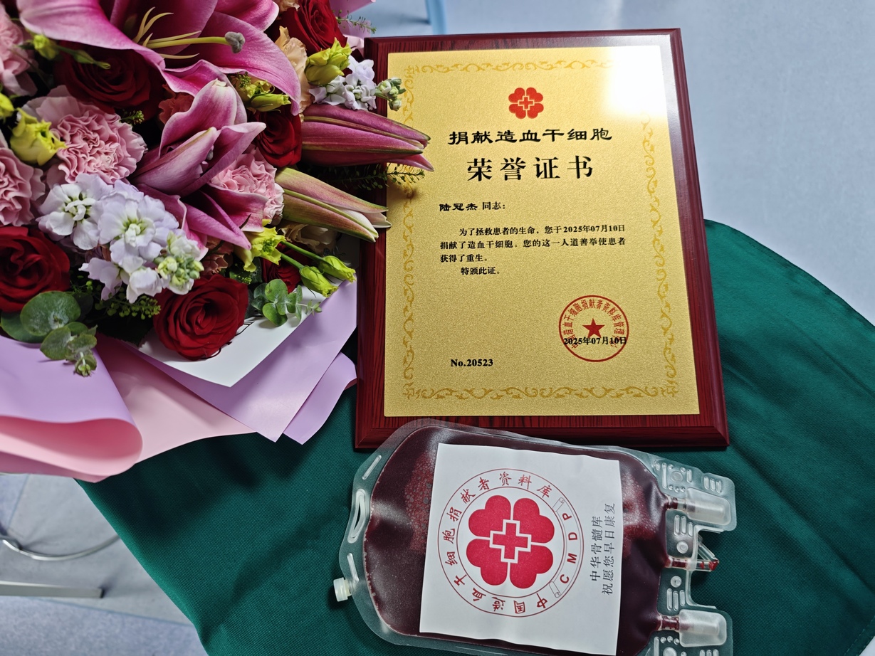 这个决定在2025年3月迎来了结果——经检索,他与一名血液病患者配型相合。从那一刻起,陆冠杰正式踏上了这场生命接力的征程。