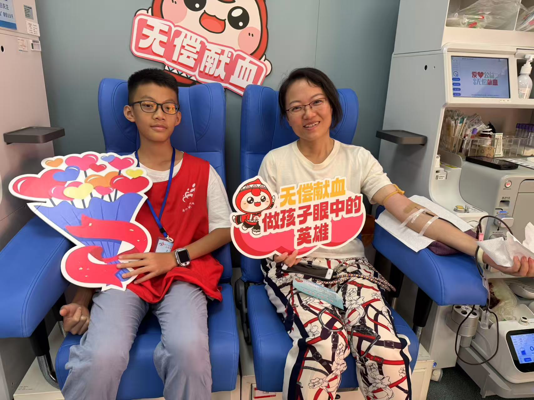 “看到孩子主动帮别人倒水、指导流程,突然觉得他长大了。”陪同孩子参与活动的家长余佩纱感慨道。她一直坐在角落默默关注着孩子的一举一动,看着孩子在服务中逐渐自信,深受感染的她也挽起袖子加入了献血队伍。“妈妈加油!”看到妈妈走上献血椅,小小志愿者诸天浩立刻跑上前为妈妈打气,母子俩相视一笑的瞬间,成了血屋里最温馨的画面。