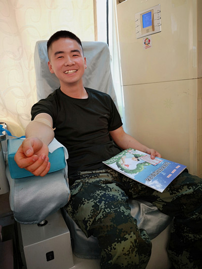 7月30日,虽然是清晨,但是气温已经超过30℃,扬州市中心血站的无偿献血车按照指定的时间来到武警支队江都中队。武警官兵们得知血站血液库存已降至冰点,无法满足临床用血的正常需求,纷纷愿意伸出膀臂加入到无偿献血的队伍中来。他们当中有每年参与无偿献血的官兵,也有刚加入这绿色军营的新战士。俞竣耀是标准的“00后”今年刚满19岁,看见战友们在填写表单,他也加入了进来,经过严格的体检化验后,成功捐献300毫升全血。稍作休息,俞竣耀便赶回了他的坚守的工作岗位。他们的无私奉献,他们的英姿飒爽,他们的气宇轩昂,这才是当代中国军人的本色,一身戎装,一生担当,谁是最可爱的人?毋庸置疑,他们就是最可爱的人,值得每个人尊敬的人。