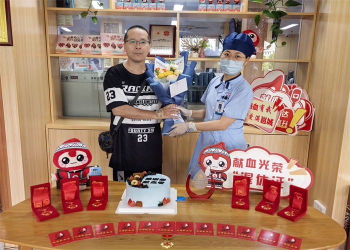 2002年,一次偶然的契机让刘智兴与无偿献血结下不解之缘。“当时看到单位一位身材瘦小的女同事主动去献血,我特别惊讶,总担心献血会伤身体。”他笑着回忆。那时的他对献血一知半解,甚至带着几分抵触。可正是同事那句“献完血反而觉得浑身轻快”的分享,让他鼓起勇气,“第一次献的时候手都在抖,紧张得不行。”刘智兴笑着回忆,随着对无偿献血的了解逐渐加深,这份坚持变得更加坚定。当时刘智兴的父亲住院急需大量血液,看着一袋袋爱心血液延续父亲的生命,他内心深受触动:“正是无数陌生人的付出,才让我的家人渡过难关,我更要把这份爱传递下去。”从此,定期献血成了他生活中雷打不动的习惯,这一坚持就是23年。