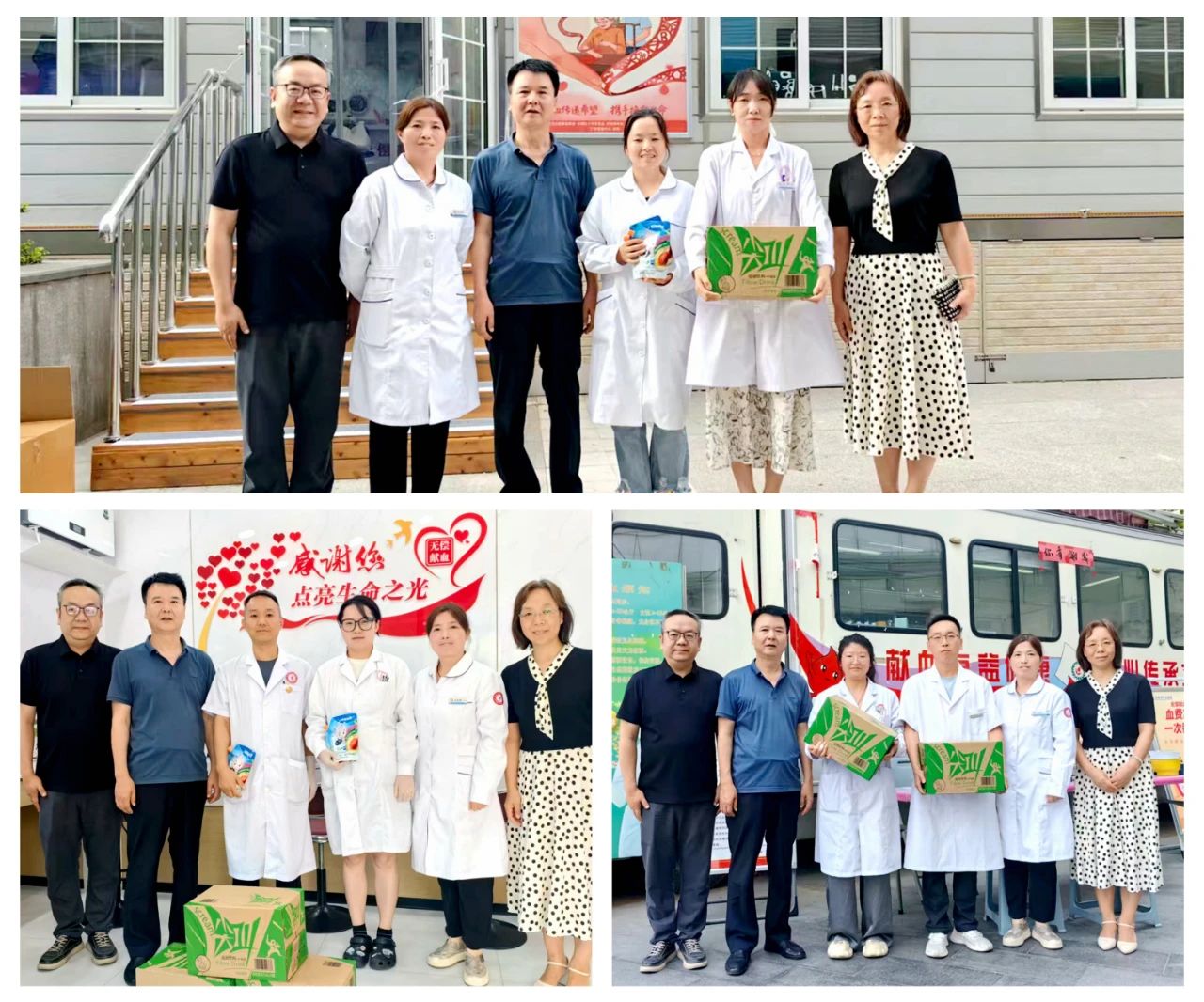 7月16日下午,站党总支书记白增辉、站长净红利、副站长刘磊及相关科室负责人先后深入市区各献血点,看望慰问坚守一线的工作人员,并为他们送去防暑降温物资。
