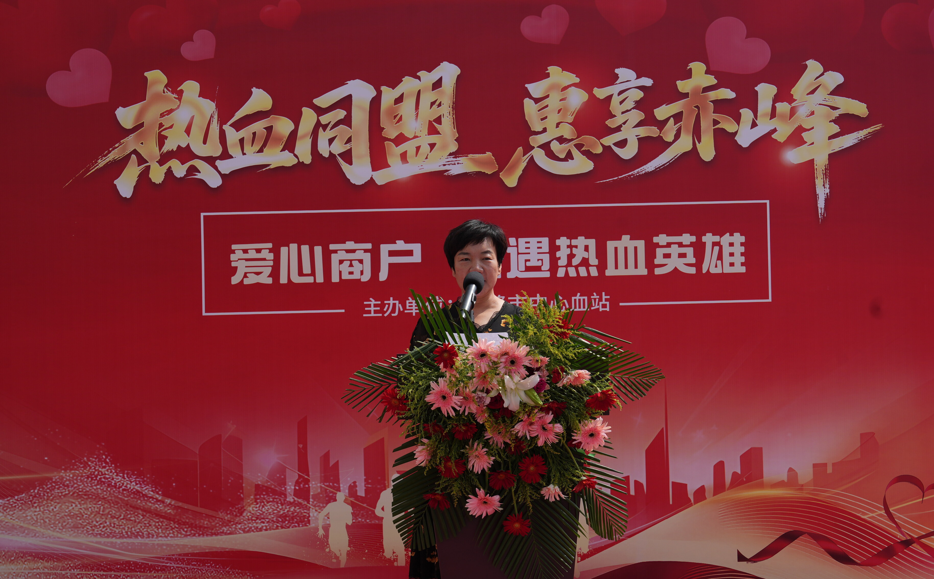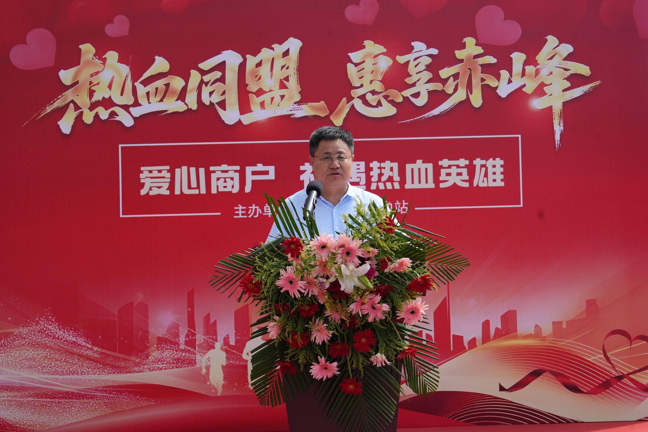 赤峰市中心血站党支部书记、站长王鹏坤在致辞中表示:“无偿献血者是城市的生命守护者,‘热血同盟’的成立是赤峰首次以商户联盟形式回馈献血者。未来我们将联合更多力量,让爱心‘双向奔赴’!”