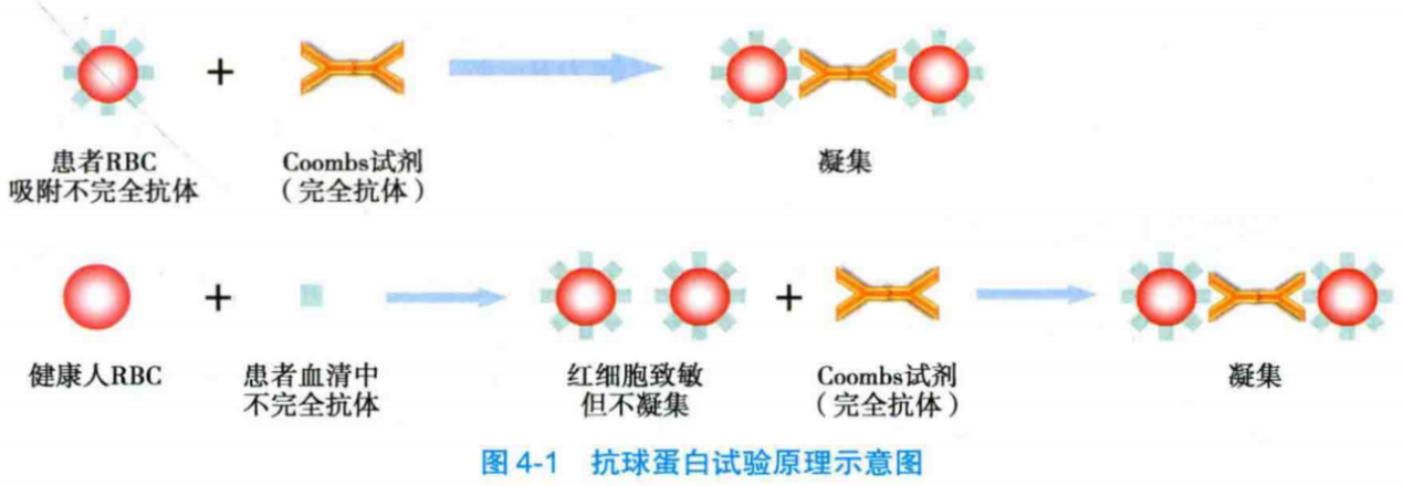 抗球蛋白抗体是完全抗体,可与多个不完全抗体的Fc段相结合,导致红细胞凝集。DAT阳性:针对红细胞抗原的不完全抗体(绝大多数为IgG,极少数为IgA或IgM)或补体(C3)吸附在红细胞膜上,使红细胞致敏,不完全抗体或补体的Fc段与抗人球蛋白发生特异性的抗原抗体结合反应,使致敏的红细胞发生凝集。