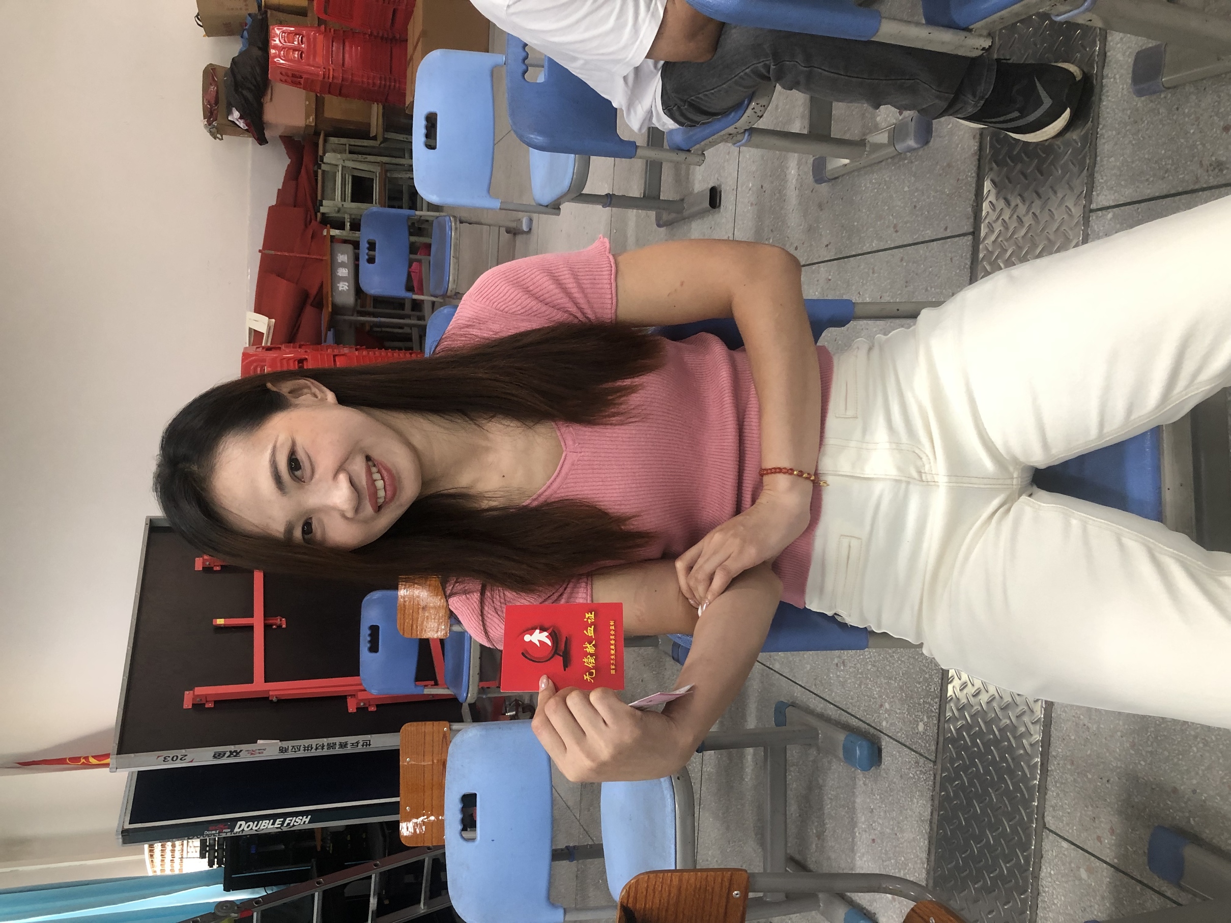 献血活动开始前,血站讲解员首先为大家细致宣讲了血液科普知识,随后在志愿者的引导下,大家有序排队,积极参与到献血中来。尽管当天天气异常炎热沉闷,大家的衣服湿了又干,干了又湿,盐渍在衣角结成了白霜,但丝毫没有一点怨言。氧气美少女陈幸瑜汗水顺着脸颊滴在表格上,晕开了小小的墨点,她捋袖捐献 400 毫升血液后爽朗的跟正作人员说:“天热 怕啥?献血救人是人命关天的事,多跑几趟都值!”
