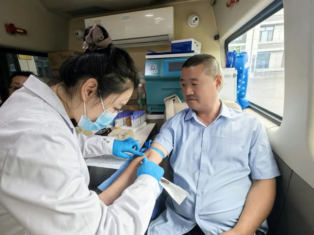现场,教体局干部职工有序排队,填表、体检、化验、献血,整个过程严谨而温暖。献血队伍中,既有初次参与的“新兵”,更有坚持多年的“热血老兵”。李磊女士已是第8次献血,她伸出臂膀,汩汩热血传递着她多年如一日的无私大爱;晁岳涛先生更是完成了个人第10次献血,用十年坚守为生命护航。他们平凡的身影,在风雨中筑起了一道守护生命的坚实堤坝。