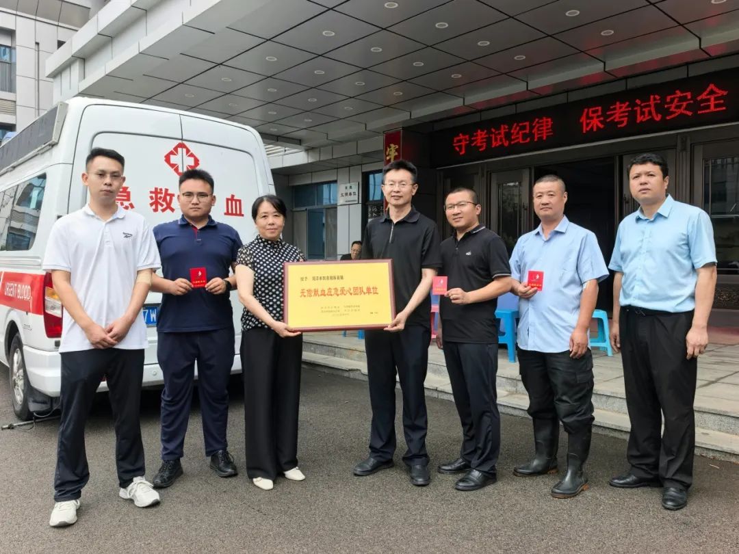 菏泽市中心血站现场授予该局“无偿献血应急爱心团队单位”荣誉牌匾。血站负责人高度赞扬:“教体局干部职工在特殊天气下仍踊跃献血,这份响应的速度与奉献精神令人感佩,是当之无愧的应急爱心先锋。”