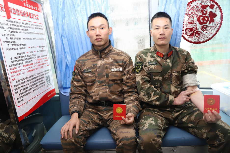 近年,梧州共有298名官兵参加献血,献血量达100250毫升。官兵们用滴滴热血谱写了子弟兵与人民群众的鱼水深情,弘扬了新时期官兵无限博爱的高尚情怀,为我市无偿献血工作做出了积极的贡献。