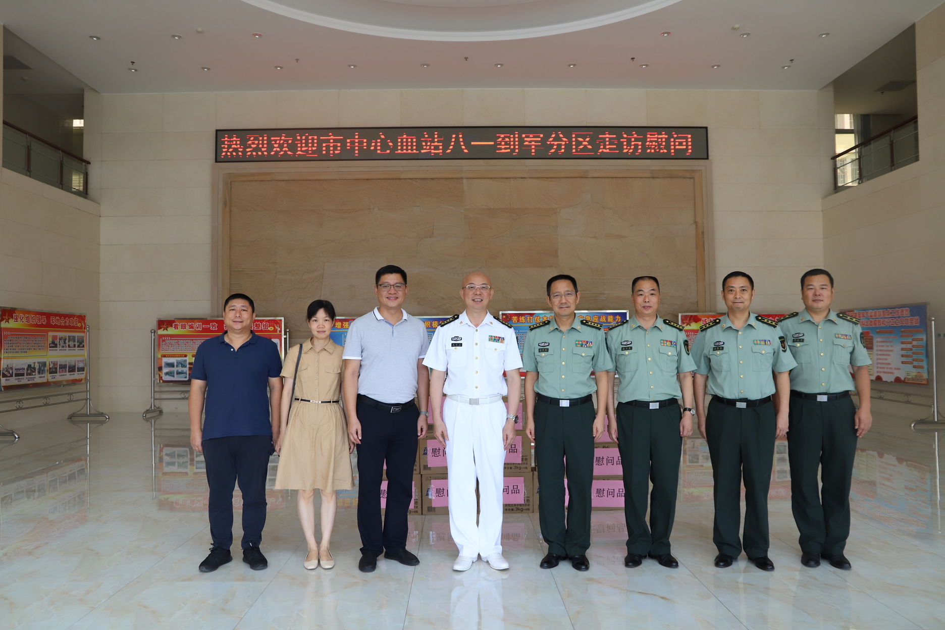7月中旬,在“八一”建军节来临之际,梧州市中心血站站长李尧、书记黄芳率班子成员及干部职工走访慰问驻梧部队官兵,并送上慰问品,向官兵们致以崇高的敬意和节日的问候。