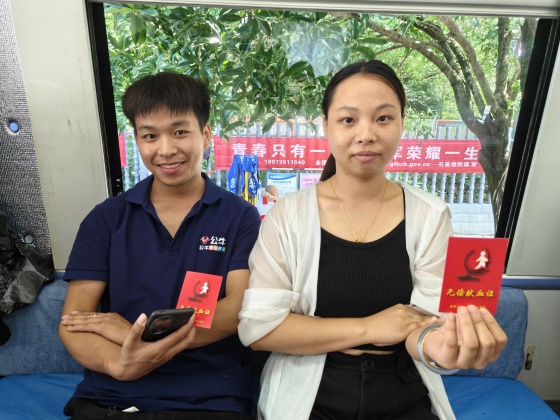 年轻夫妻段文康、陈雅丹并肩而坐,共同挽袖献血,他们虽然年纪不大,但分别献血10次和6次。当被问及为何选择“夫妻档”一起来献血时,他们表示:“两个人一起来,感觉特别有意义。这不仅是帮助他人,也是我们共同践行社会责任、为生命加油的一种方式。”