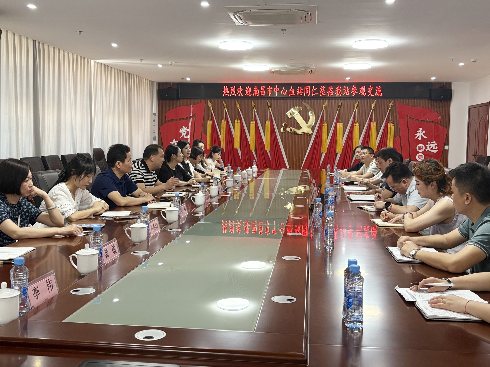 七月流火,赣鄱情深。7月24日,南昌市中心血站党支部书记、站长钱献、副站长姜珍一及行办、献血服务部、血源科、献血科、机采科等科室骨干一行,赴九江市中心血站开展学习交流活动。盛夏时节里,两地血站人以心为桥,共筑无偿献血事业协同发展的纽带。