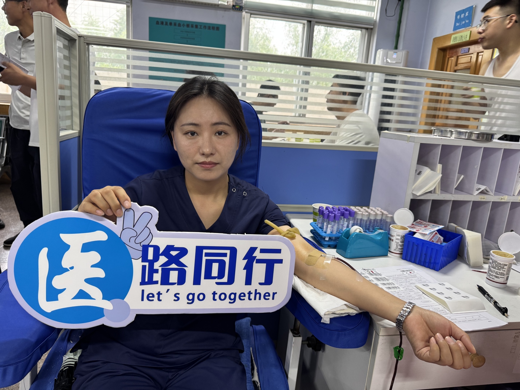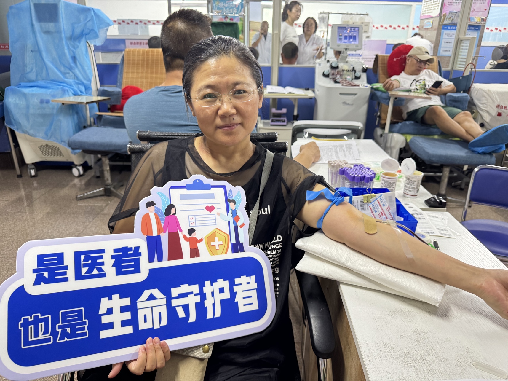 活动现场,爱心涌动。尽管日常医疗工作繁忙,但党员干部们纷纷挤出时间,有序排队参与献血。从信息登记、健康检查到血液采集,每一个环节都井然有序。大家脸上洋溢着奉献的喜悦,手中的献血证成为这个夏天最珍贵的“勋章”。