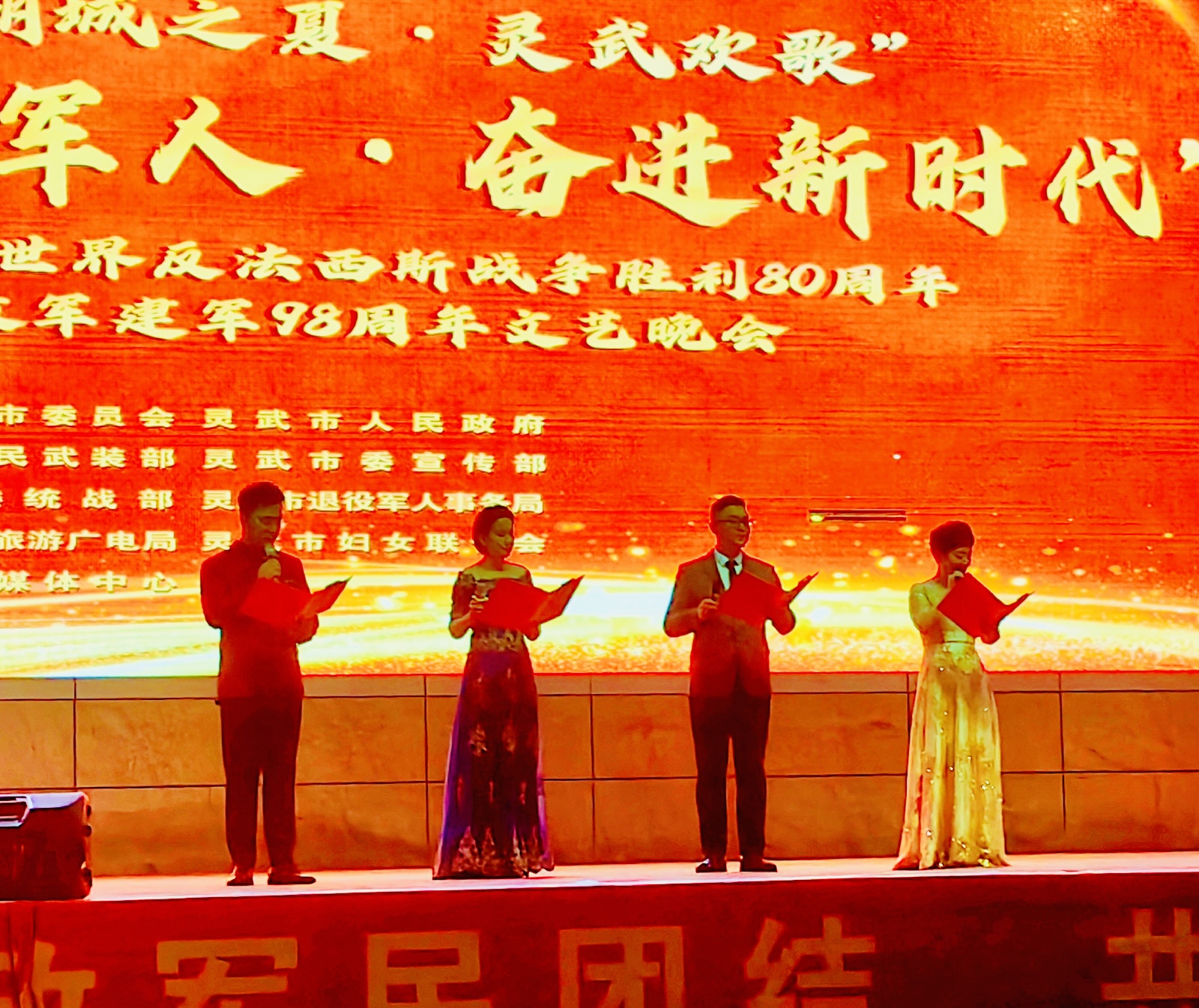 7月31日晚,由中共宁夏灵武市委员会和灵武市人民政府主办,灵武市人民武装部、灵武市委宣传部、灵武市委统战部、灵武市退役军人事务局承办,灵武市文化旅游广电局、灵武市融媒体中心、灵武市妇女联合会协办的“2025年‘湖城之夏·灵武欢歌’‘铭记历史·致敬军人·奋进新时代’纪念中国人民抗日战争暨世界反法西斯战争胜利80周年和庆祝中国人民解放军建军98周年”文艺晚会在灵武市灵州广场圆满举行。