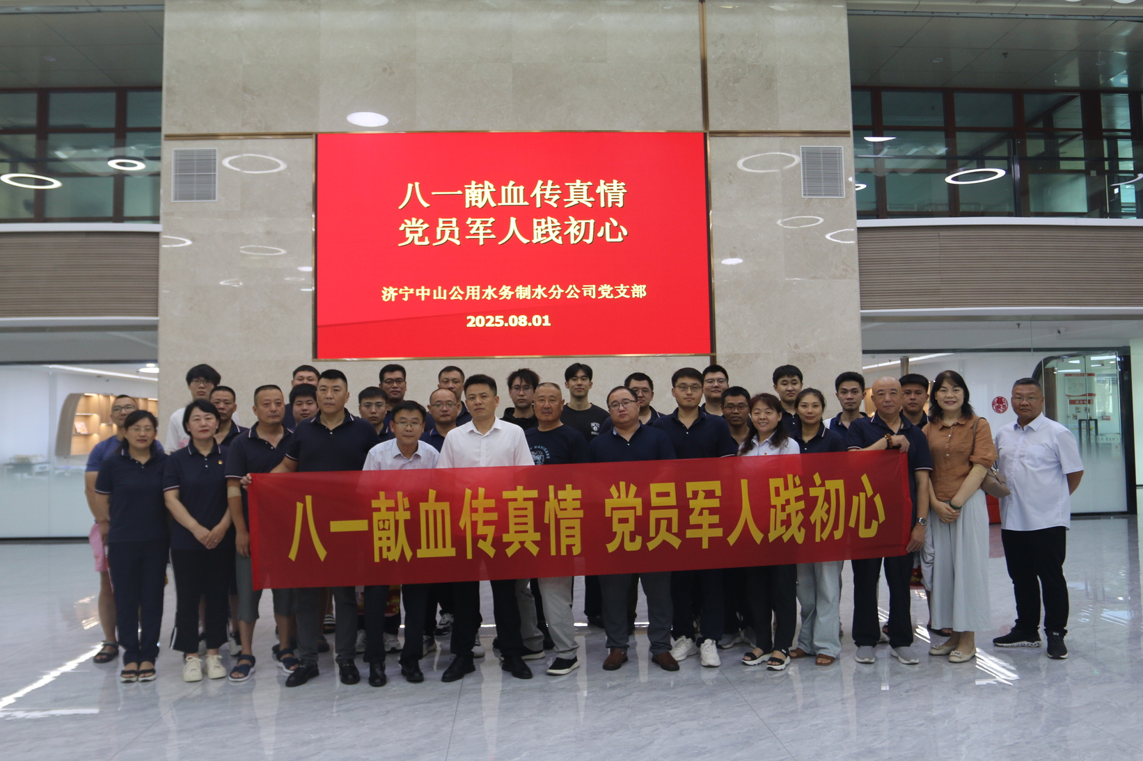为庆祝中国人民解放军建军98周年,弘扬无私奉献精神,践行社会责任,8月1日,济宁中山公用水务制水分公司党支部组织开展“八一献血传真情 党员军人践初心”无偿献血活动。公司党员、退役军人、团员及职工积极响应,以实际行动传递爱心,展现国企担当。