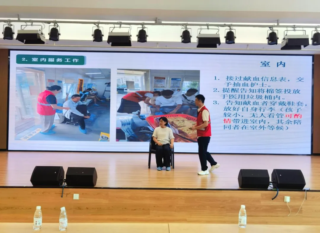 培训伊始,云南昆明血液中心讲师李正罡以互动问答形式,深入浅出普及了无偿献血相关知识。随后,昆明市无偿献血志愿者协会讲师团长蔡芸聚焦服务实战,通过案例解析,系统讲授了志愿者在献血全流程中的服务规范与技巧。最后志愿者们还进行了实操演练,模拟场景互动,应急处理培训。