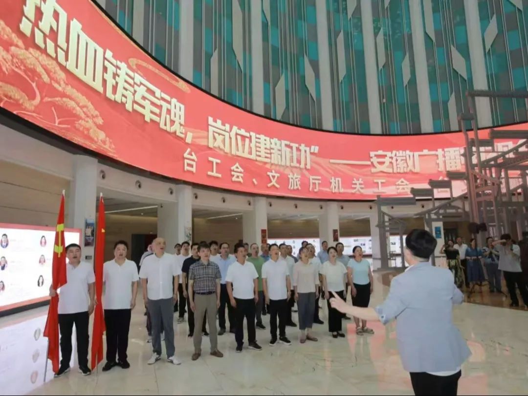 活动在整齐的队列训练中开启。安徽广播电视台党委副书记章文静向台退役军人致以崇高敬意:“你们曾身着戎装,保家卫国,如今脱下军装,在新闻舆论战线继续书写着忠诚与担当。希望全台退役军人继续发扬‘特别能吃苦,特别能战斗’的光荣传统,在系统性变革中勇当先锋、再立新功!”现场退役军人军姿挺拔,步伐铿锵,一二三四的口令整齐响亮!大家齐唱军歌,再一次重温退役誓词,“若有战,召必回”的誓言在大厅回荡。退役老兵代表与年轻党团员共同展开巨幅党旗、军旗合影,镜头定格下信仰传承与使命接续的动人瞬间。