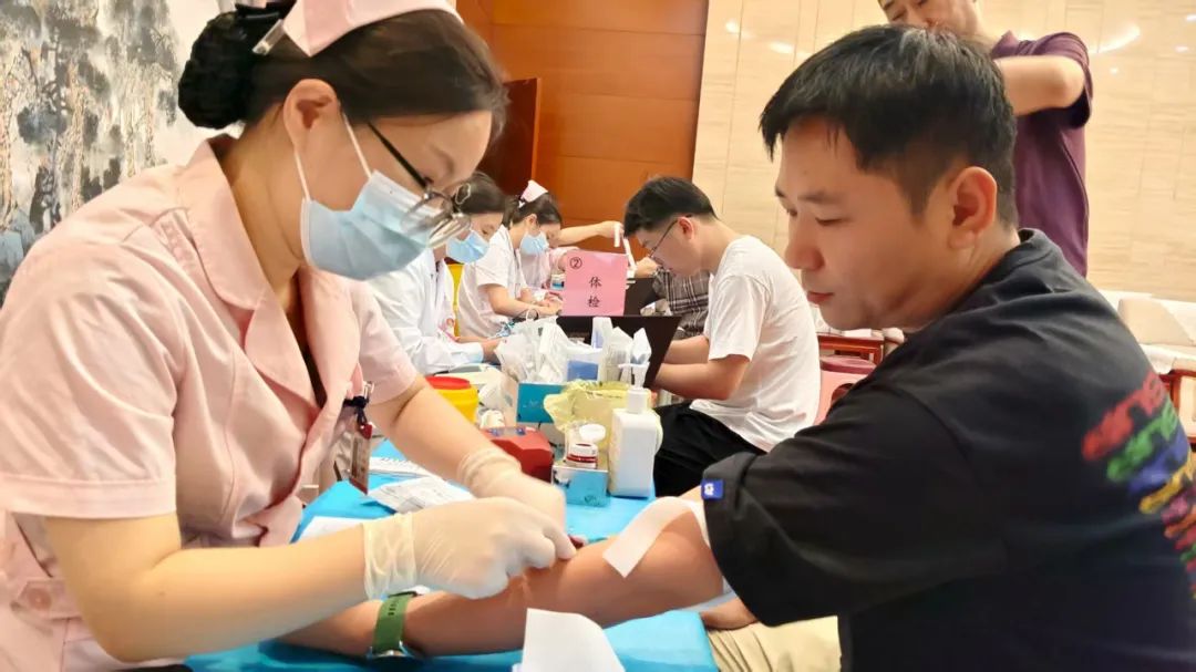 仪式一结束,退役军人们尽显纪律性与行动力,成为献血先锋。献过92次血的离退休部退役老兵彭岩,早早来到现场排在队伍最前列,沉稳神情与利落动作传递着军人气质,赢得年轻同事敬佩。
