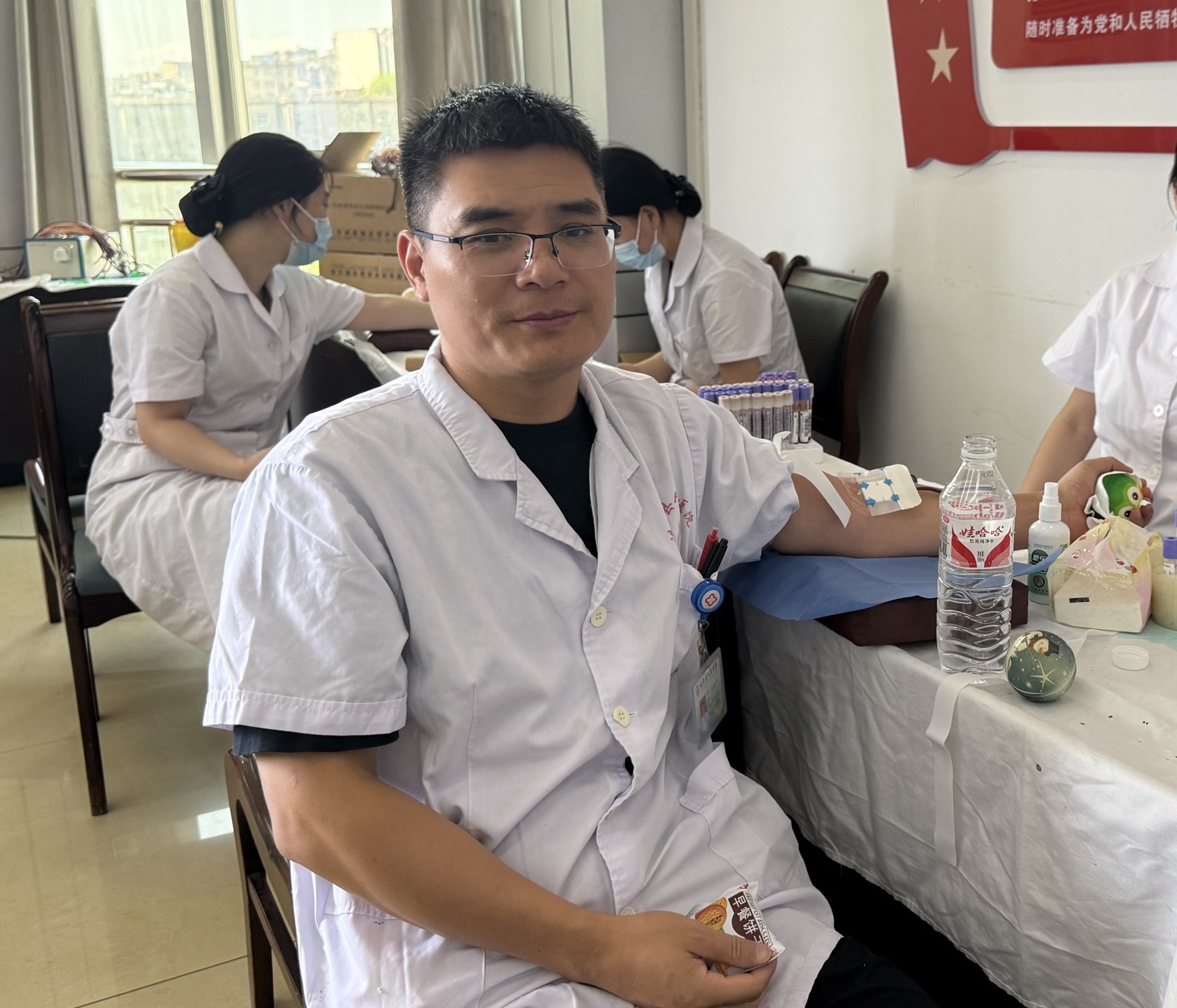 他们中,既有多次献血的“献血达人”,也有初次尝试的“热血新人”,许多医护人员利用工作间隙赶来献血,甚至有刚下夜班、下手术就匆匆加入队伍,大家纷纷挽起衣袖,用爱心为生命续航,为缓解临床用血紧张贡献自己的力量。