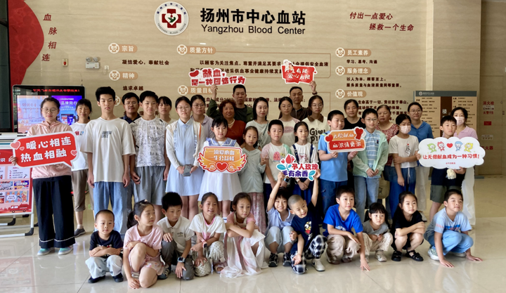 2025年8月4日,扬州市中心血站“童眼绘献血”活动正式启动。近30名“小画家”们走进血站,开启了一场感知血液奥秘与无偿献血崇高意义的探索之旅。