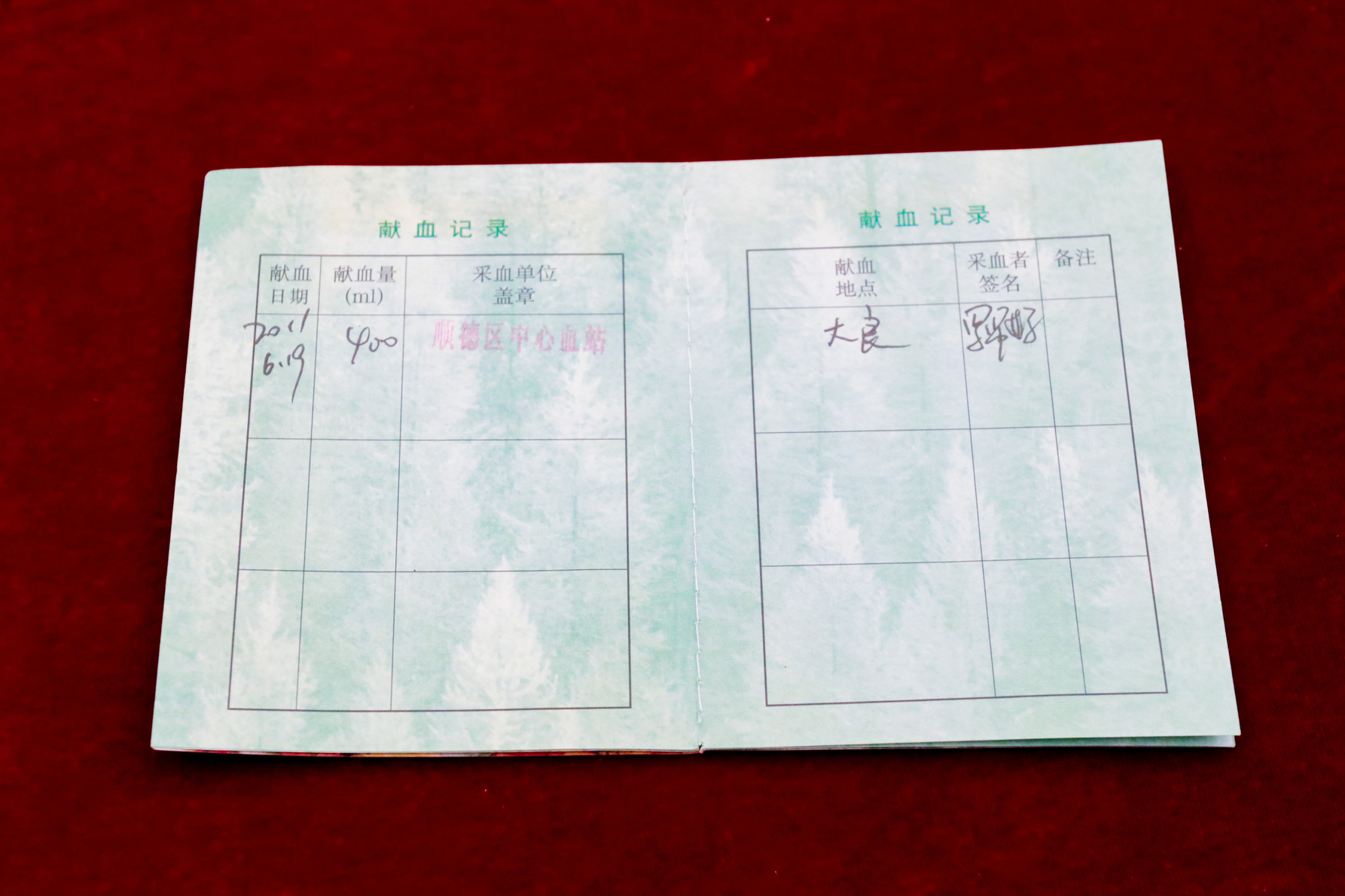 2011年6月19日上午,黄善军正在顺峰山公园里晨跑,恰好遇上顺德区中心血站的流动献血车,他当即走上前,挽起袖子捐献了400毫升血液。那本崭新的献血证被他仔细保存至今,当时只是一次偶然的善举,却没料到,这袋滚烫的血液会在九年后,成为托举自己生命的力量。