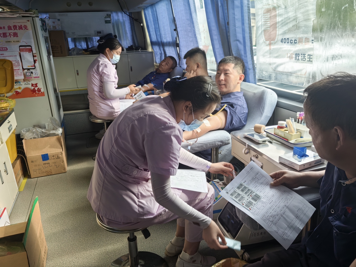 8月15日上午,淄博市中心血站的献血车来到山东金岭矿业股份有限公司,共同开展了一场无偿献血活动。活动气氛热烈而温馨,温热的血液缓缓汇集,承载着爱心与责任。