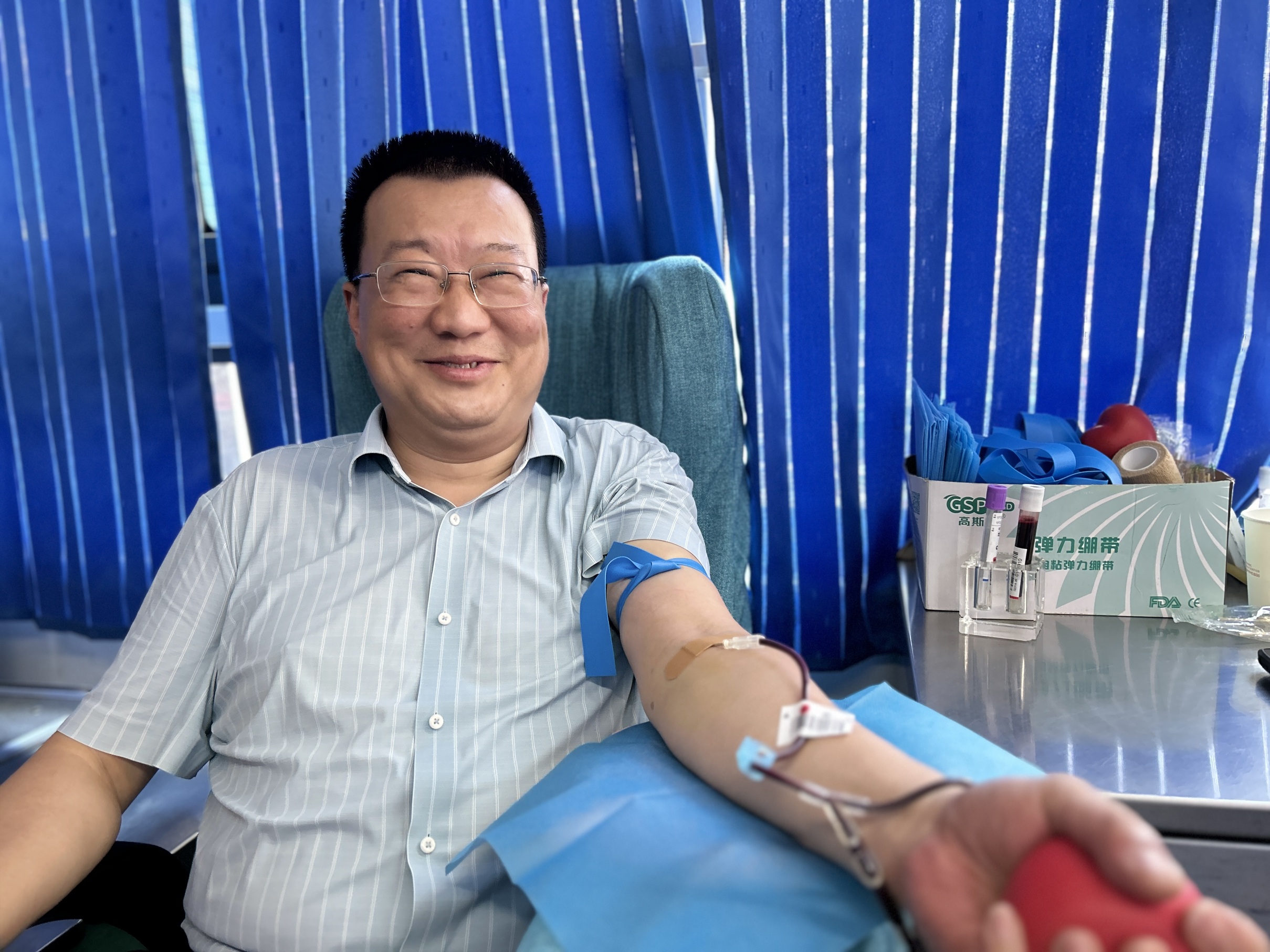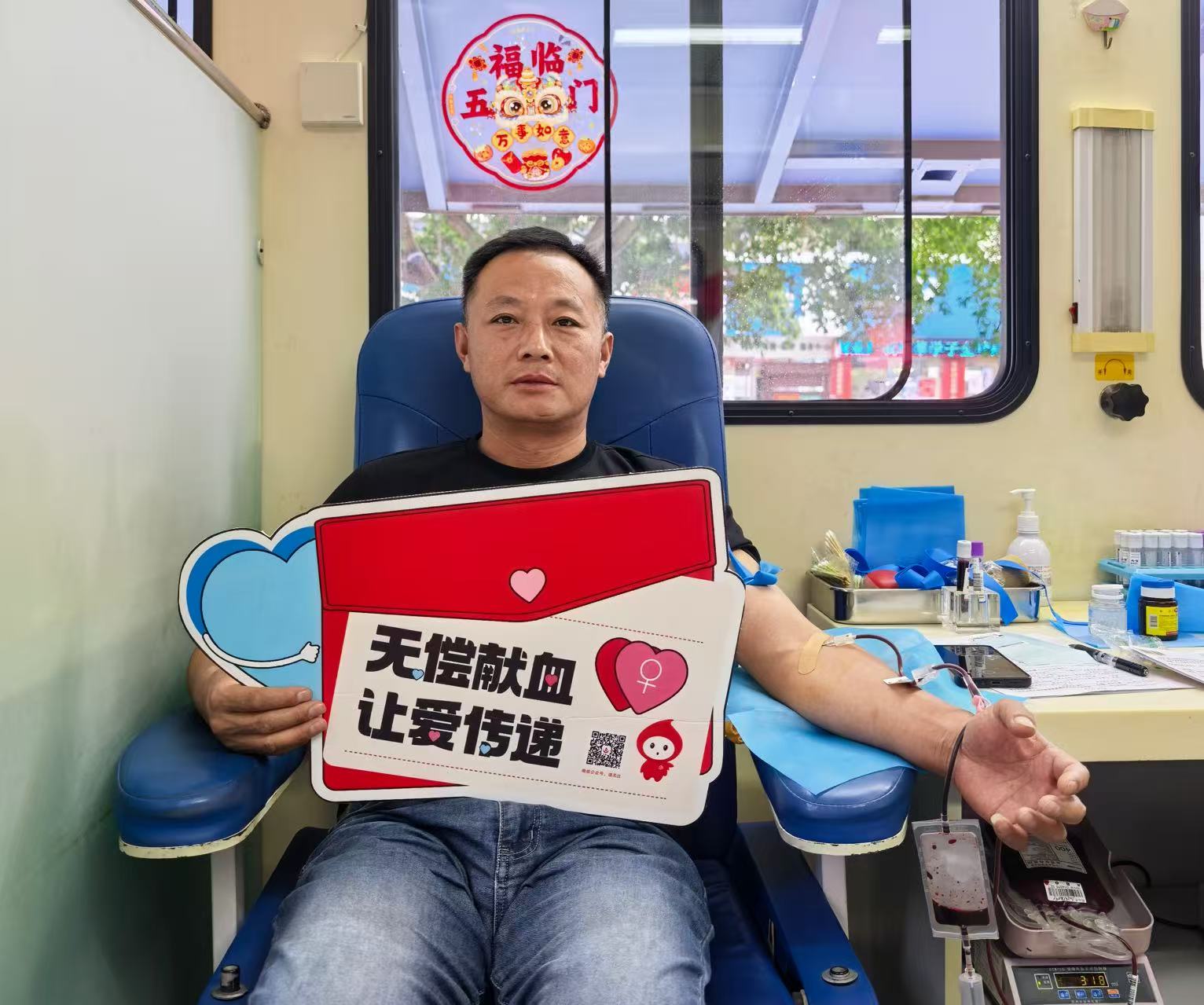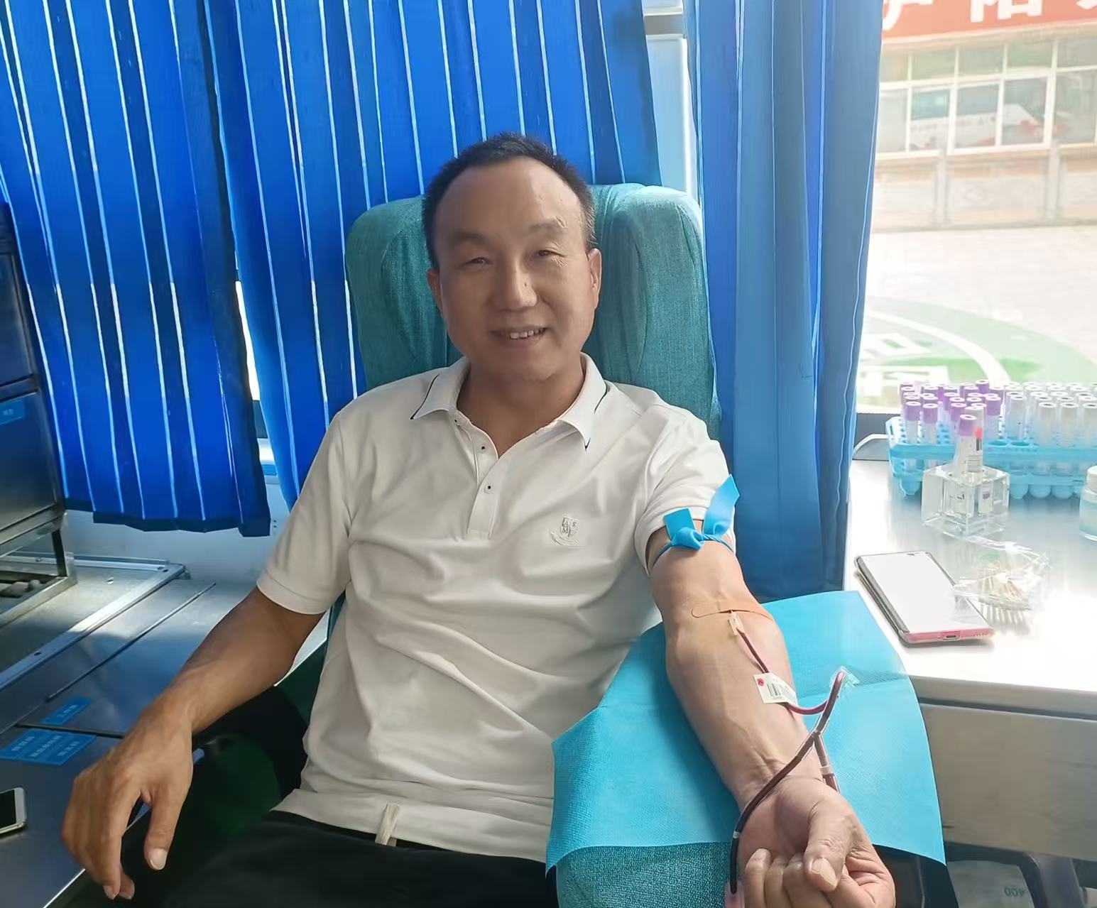 每天穿梭在城市的大街小巷,为乘客提供便捷的出行服务。尽管工作忙碌,但他始终心系公益。一个清晨,吴德军师傅在送完一位乘客后,恰好路过采血车。他将车停在一旁,走进采血车,笑着对工作人员说:“平时就想着能为社会做点贡献,今天看到采血车,正好就来献份爱心。”