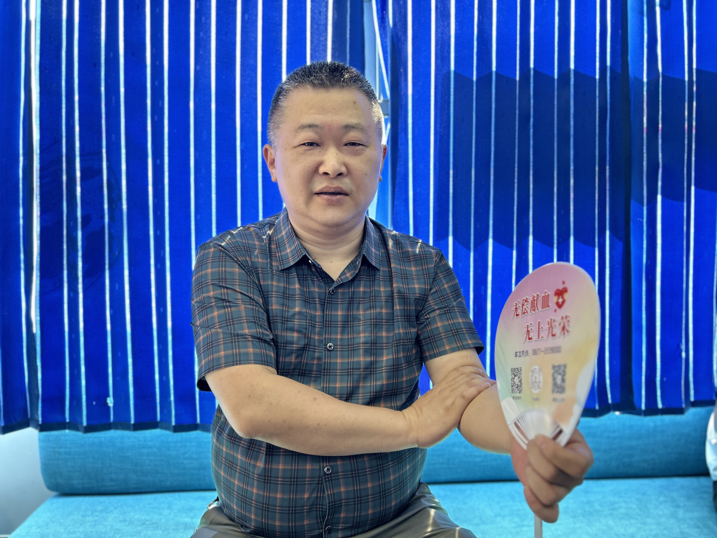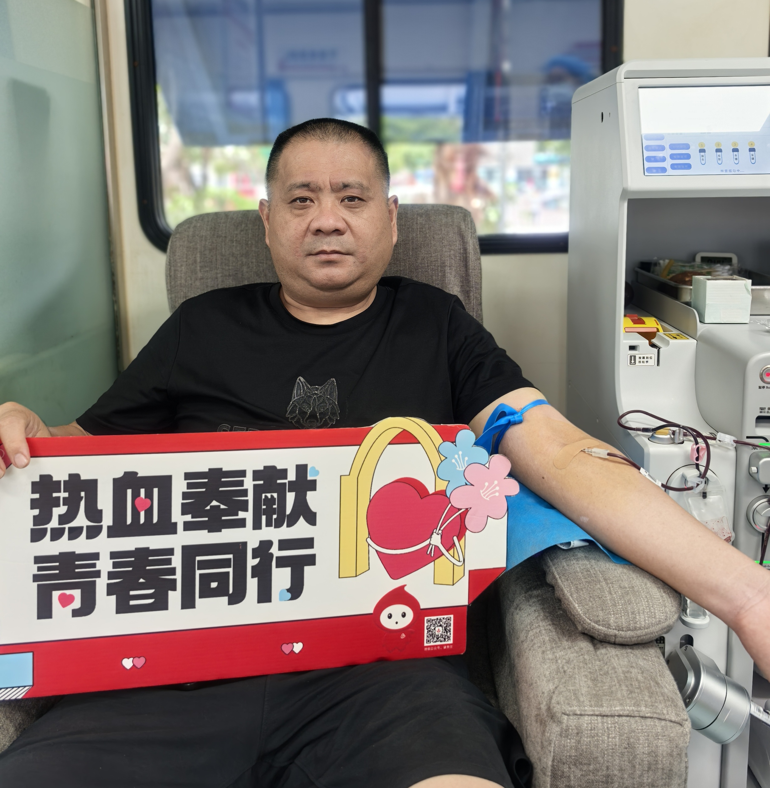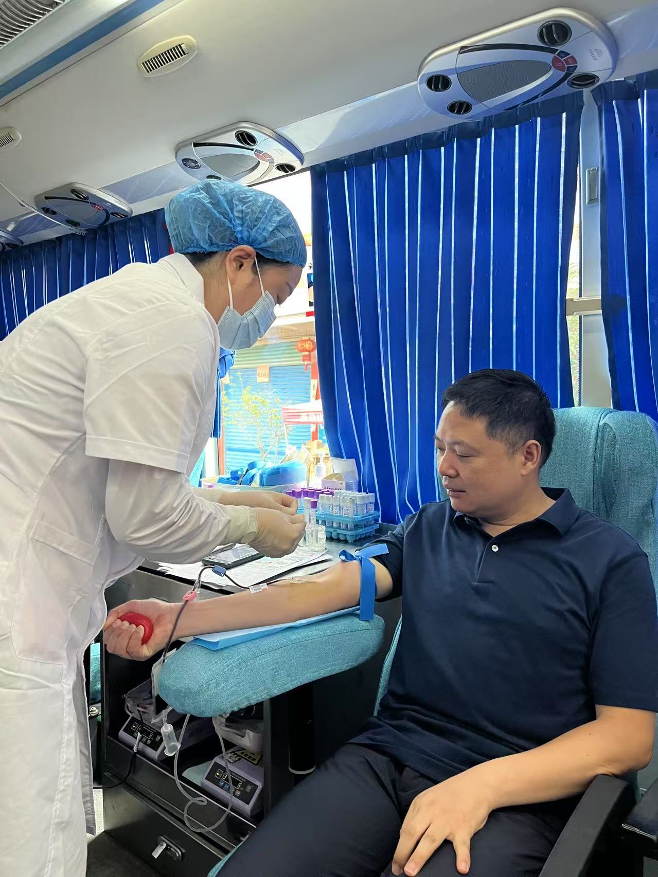 每天穿梭在城市的大街小巷,为乘客提供便捷的出行服务。尽管工作忙碌,但他始终心系公益。一个清晨,吴德军师傅在送完一位乘客后,恰好路过采血车。他将车停在一旁,走进采血车,笑着对工作人员说:“平时就想着能为社会做点贡献,今天看到采血车,正好就来献份爱心。”