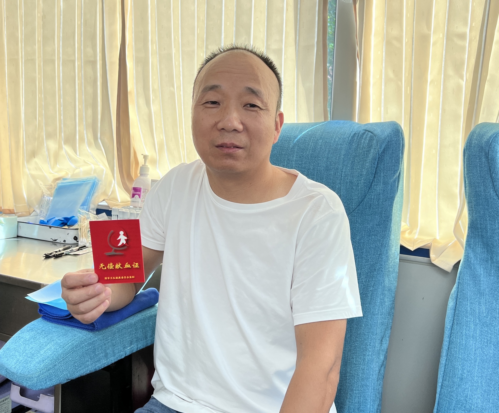将乘客安全送达通江县人民医院后,看到医院门口停放着采血车,立即将自己的车停放好,毅然地走进采血车,成功捐献血液,这是他第4次献血,累计1600毫升。