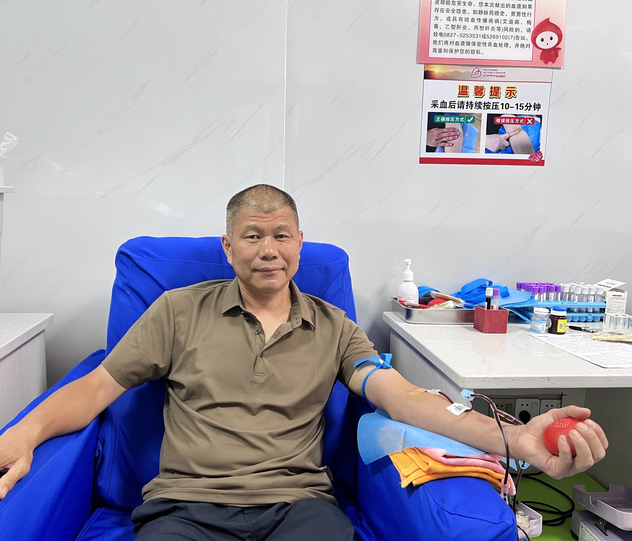 当他看到一则用血需求信息时,卫群没有丝毫犹豫,立刻放下手中的工作,赶往离他最近的献血点——通江爱心献血屋,各项检查合格后捐献了400毫升血液。截至目前,他已累计献血 3600毫升。每一次紧急驰援,他都全力以赴,因为他知道,自己的这一袋血,可能就是患者生命的希望之光。