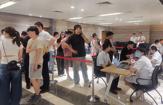 活动当天,员工们早早就来到现场。8点半刚过,发展大厦二楼大厅便人头攒动,暖意融融。在血站工作人员和集团志愿者的引导下,员工们有序地进行着登记填表、血压测量、血液化验等环节。
