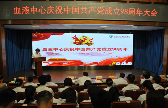 6月27日,北京市红十字血液中心举办庆祝中国共产党成立98周年大会。大会由中心党委副书记郭晓江同志主持,中心领导班子成员、全体党员和入党积极分子160余人参加。