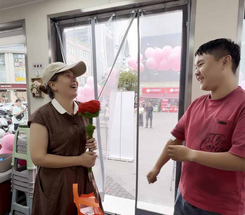 在万寿宫献血点,献血者邓宇俊完成献血后,将工作人员赠送的七夕玫瑰郑重递给了母亲。他笑着说:“妈妈一直是我的榜样,今天我想用这种方式告诉她,献血不仅是爱的传递,更是对生命的守护。”这束承载着爱心的鲜花,在七夕的晨光中绽放出别样的温暖,也让现场工作人员为之动容。