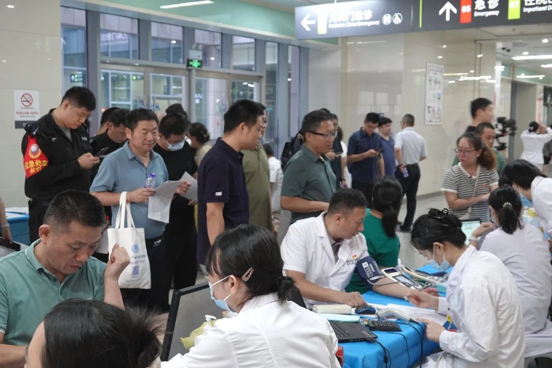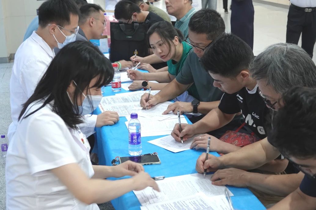 活动现场分为填表区、体检区、快速检测区等,工作人员引导大家有序完成流程。在献血队伍当中,既有临床一线的医生、护士,也有行政后勤人员,还有院内职工家属,他们都献上“一臂之力”,展现出医务工作者的爱与情怀。