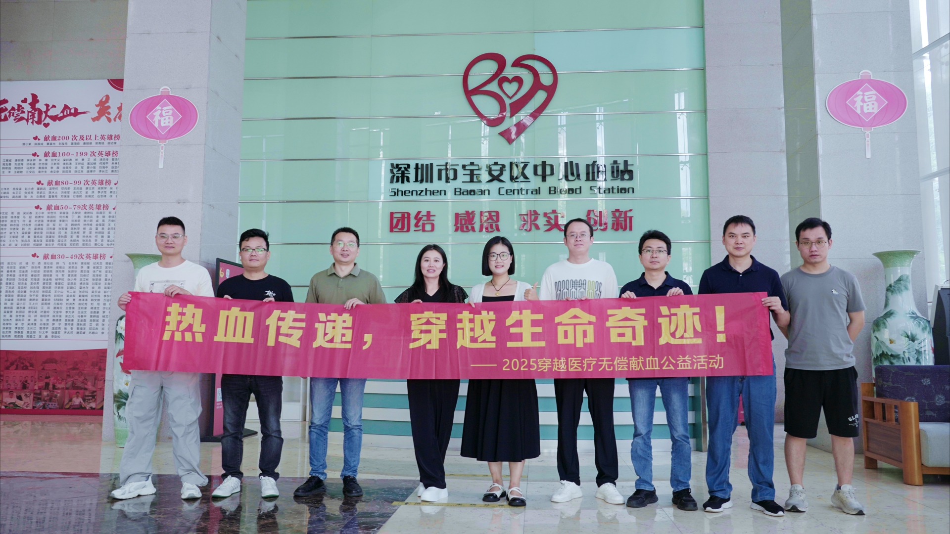 2025年9月5日上午,广东穿越医疗科技有限公司(以下简称“穿越医疗”)组织公司员工走进深圳市宝安区中心血站,开展“热血传递 穿越生命奇迹”团体无偿献血公益活动。此次献血既是穿越医疗积极响应深圳市血液中心发布的无偿献血倡议书的务实之举,也是公司在本年度内第二次以团体献血形式践行企业社会责任。