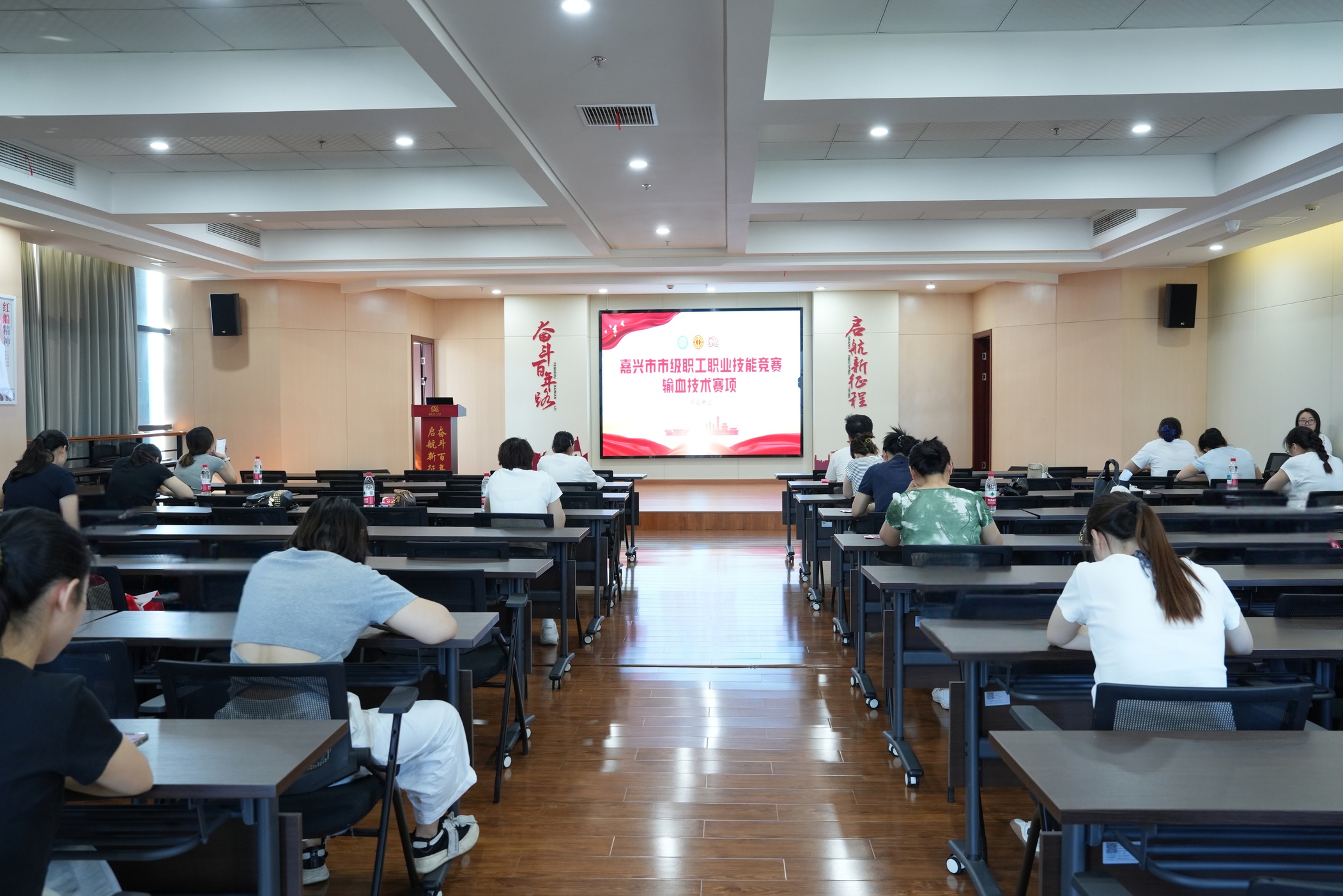 为进一步提升嘉兴市采供血系统职工专业技能水平,打造一支业务精、技术专、能力强、水平高的专业队伍,推动我市无偿献血事业健康稳定发展,8月27日,2025年嘉兴市市级职工职业技能竞赛输血技术赛项在嘉兴市中心血站成功举办。本次竞赛通过层层选拔,来自全市22名血液采集及成分制备专业技术人员参加。