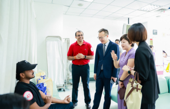 9 月 7 日上午,"爱暖申城,生命献礼" 第十一届印度友人献血活动在上海市血液中心温情启幕。上海市人民对外友好协会宿琳副会长、上海市卫生健康委员会狄建忠副主任,印度驻沪总领事普拉蒂克・马图尔,上海市血液中心主任张晰,上海市血液管理办公室主任、上海市血液中心党委书记林俊杰出席活动,并现场慰问献血志愿者。