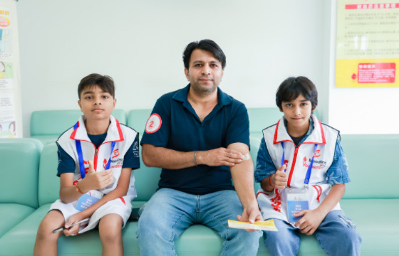除了热心献血的印度友人,现场还有一群朝气蓬勃的 "小小志愿者" 非常亮眼。这些来自晋元中学和印度人协会的少年志愿者们,身着统一志愿者服装,穿梭在人群中忙碌不停。通过中英双语熟练地为献血者指引登记、体检、献血的全流程路线,还主动协助维持现场秩序。一位来自上海市晋元高级中学的小志愿者告诉记者:"很高兴参加这样有意义的活动,不仅认识了很多印度朋友,更真切感受到献血能挽救生命的重要性,长大后我也要成为一名无偿献血者。"