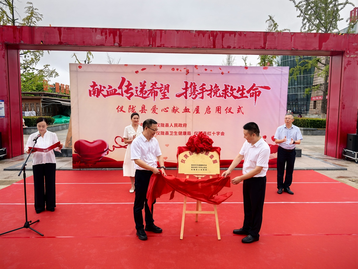9月4日,南充市“仪陇县爱心献血屋”正式启用,这是全市第10个固定献血点。启用仪式上,市卫健委副主任王辉、副县长杨全致辞并共同为献血屋揭牌,县卫健局局长唐小强、市中心血站副站长何琼及县级相关部门分管负责人、无偿献血爱心人士等100余人出席启动仪式。