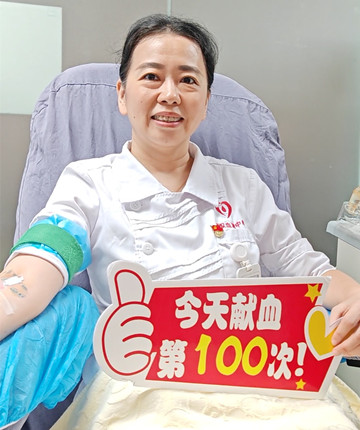 8月29日,成分献血科副主任谢晋刚完成第100次献血,成为成分献血科第3位百次献血者。谢晋说,“我们服务的献血者中,有不少人坚持献血到60岁,他们的大爱情怀让我们十分钦佩,也激励着我们并肩前行。”