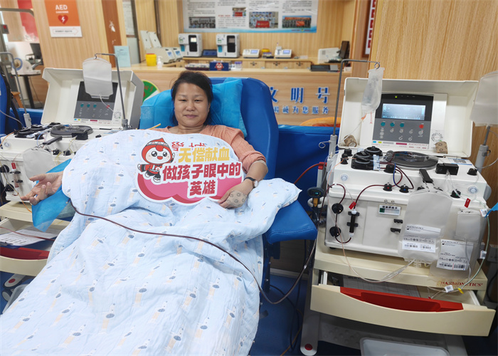 今年50岁的李金苡老师自首次献血以来,累计献血总量达26300毫升。回忆起献血的初心,李老师提到,与无偿献血的缘分始于一次偶然。2014年她在街头看到朝阳捐血屋,便鼓足勇气完成了人生第一次献血。从此,她便与无偿献血结下不解之缘,坚持每年参与献血。2020年,在工作人员的介绍下,她进一步了解到捐献成分血(血小板)的重要性,又主动加入成分血捐献队伍,让爱心奉献更加精准高效。