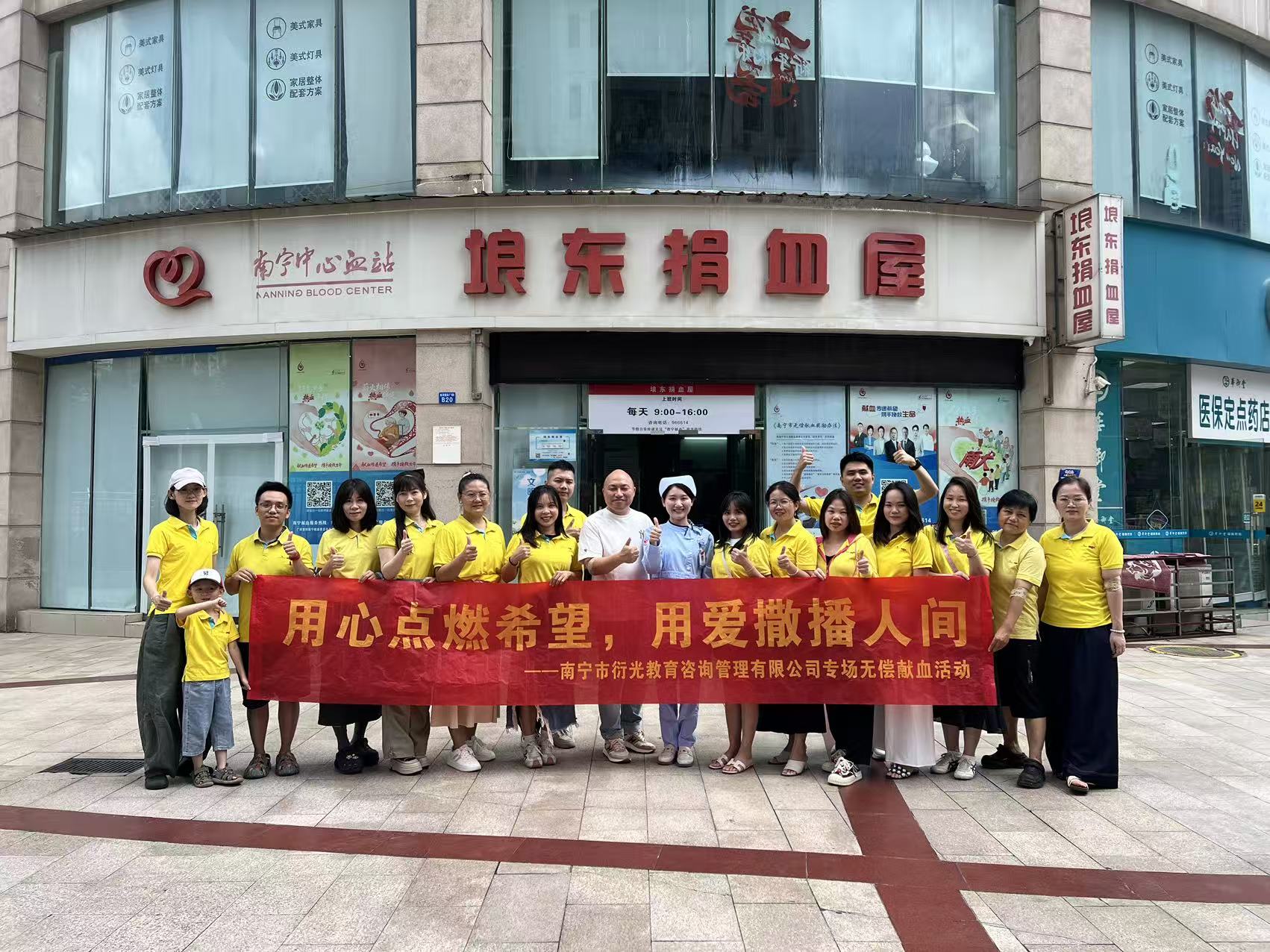 南宁中心血站:南宁市衍光教育咨询管理有限公司开展“用心点燃希望,用爱撒播人间”主题献血活动