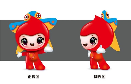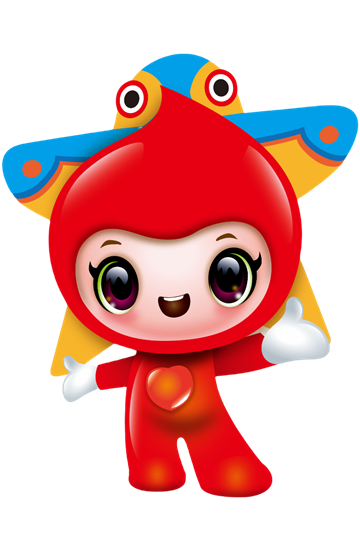 “潍小雪”通体鲜红,是一颗圆润Q弹、活力满满的小血滴,头顶一只俏皮的小燕风筝,充满爱心元素的同时也蕴含潍坊“世界风筝都”的地域特色。