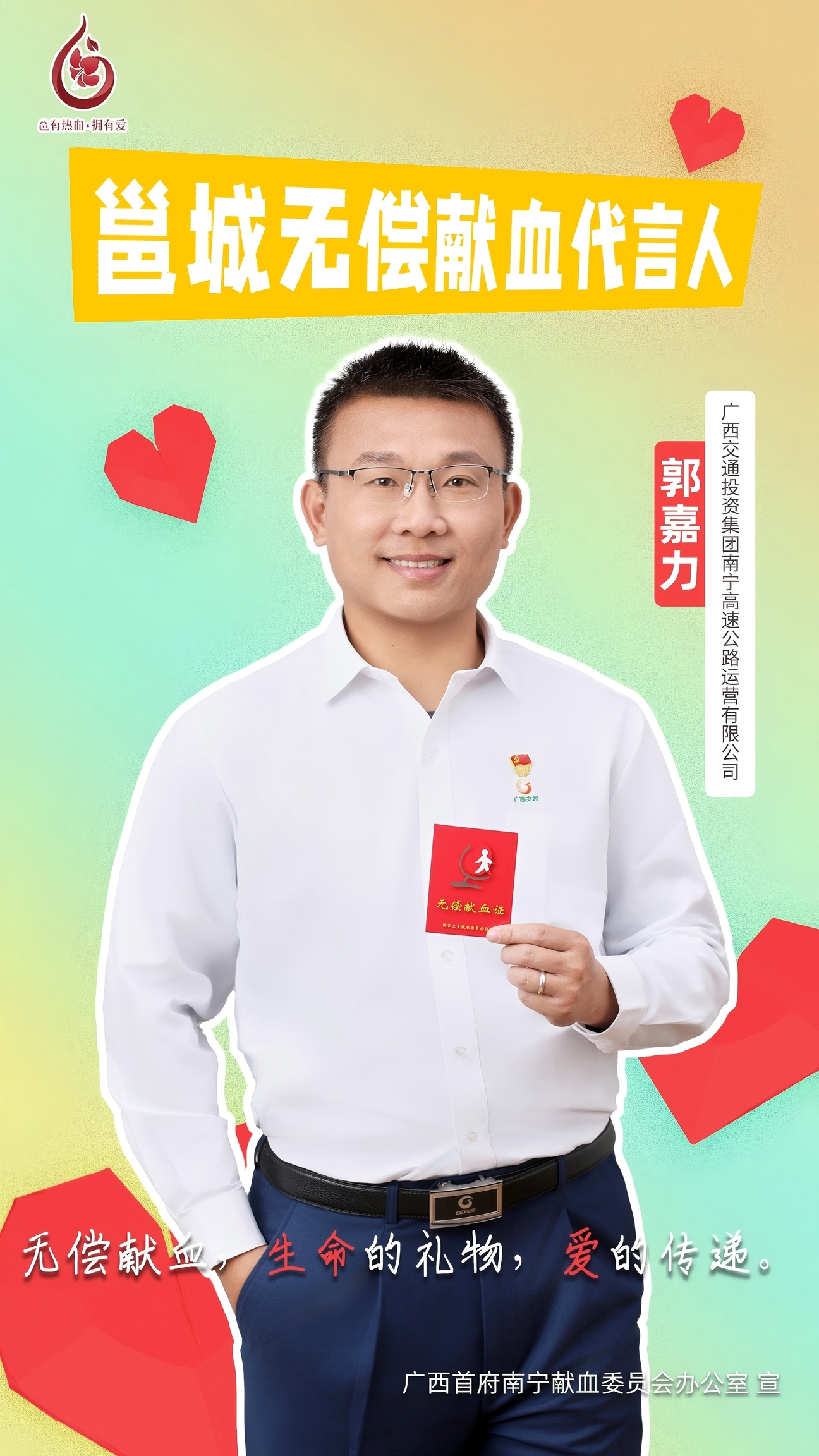 【邕城无偿献血代言人】郭嘉力:26年爱心接力“热血家庭”献血总量超7万毫升