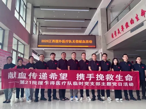 近日,2025年江西省援外医疗队出国前培训班开展集体无偿献血活动。在班委和党员同志们的动员号召下,全体队员踊跃参与,据统计,本次志愿献血共有17名队员参与,总献血量达到4000毫升。